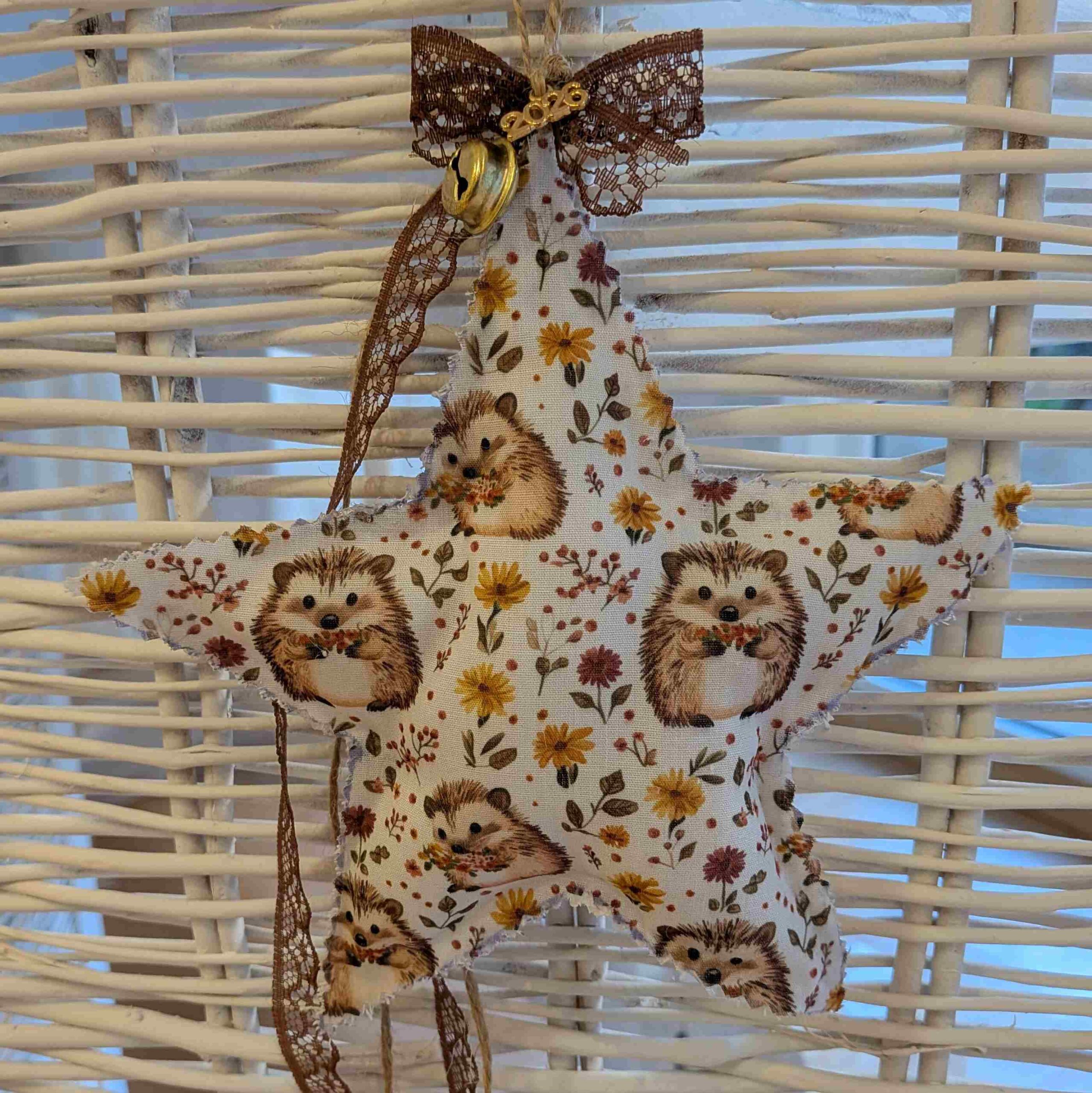 Το μοτίβο του, σε ζεστές λευκές – καφέ αποχρώσεις και χαριτωμένα σκαντζοχοιράκια που προσφέρουν μια γλυκιά, παιχνιδιάρικη πινελιά. Διακοσμημένο με κορδέλες, κουδουνάκι και μεταλλικό στοιχείο 2026, αποτελεί ένα ξεχωριστό γούρι που φέρνει ζεστασιά και τύχη στο σπίτι για τη νέα χρονιά.